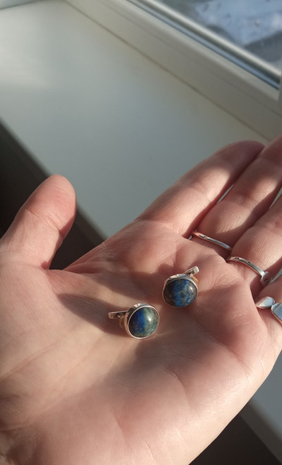 Сережки оказались меньше, чем на фото и видео. Но лазуриты в них прекрасные, с вкраплениями - любуешься, как на вечернее небо с лёгкими облачками. Но имейте в виду: серёжки еле-еле застегнулись на моей толстой мочке, да ещё с высоким проколом. Все равно буду носить их, так как лазурит один из моих любимых камней. Теперь хочу кольцо с лазуритом в таком же минималистичном стиле. Буду ждать поступления! Спасибо!