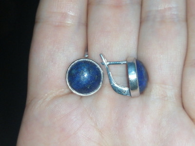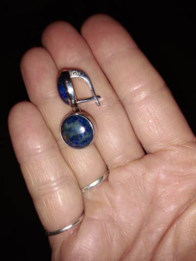 Одни из любимых серёжек.. Жаль, нет кольца, кулона или браслета.. Когда покупала, не подумала о комплекте. Но ношу с другими изделиями из лазурита. Камень с сильной энергетикой.