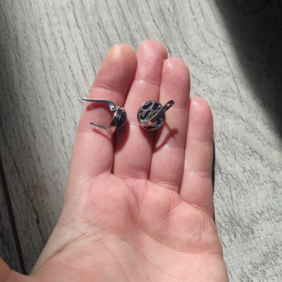 Скажем так... пристойного качества камни, хотя... хотелось бы лучше. Диаметр 11мм. Сидят идеально. Размер оптимальный для комбинаций. Нарядная обратная сторона. Рабочая длина штифта 7мм.