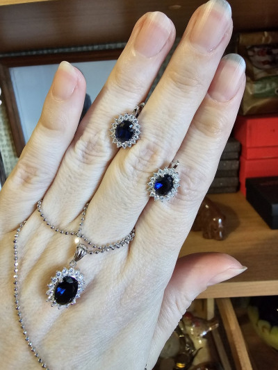Влюбилась в эти серьги, просто листая товары в приложении... а когда увидела их "живьём"- не смогла не купить! Благородная игра света на гранях Алпанита делают камни визуально не отличимыми от сапфиров. Шикарное исполнение и качественная работа! Планировала к покупке только серьги, но увидев их рядом с кулоном- взяла комплект! Очень уж образ получается завершенным. В ушках посадка отличная! Однозначно, рекомендую к покупке! Жаль, на одном из камушков царапина, но оценку снижать не стала- все-таки стекло- не сапфир, и если не приглядываться, не заметно.
