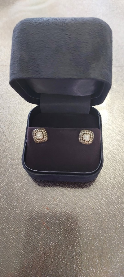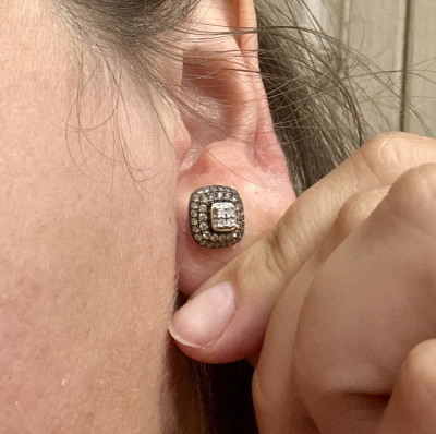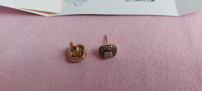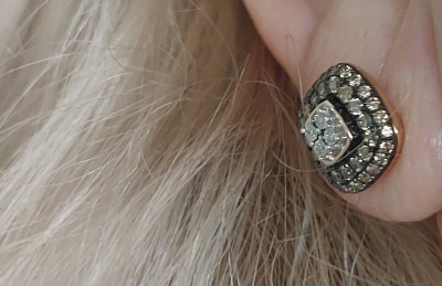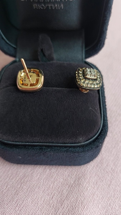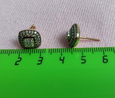 Серьги примерно 1см * 1 см по размеру, это здорово! Тонкая работа! Не знаю, насколько это видео на сайте, но они не плоские, брильянты уложены «пирамидой», постаралась передать это на видео