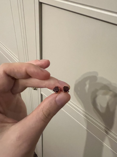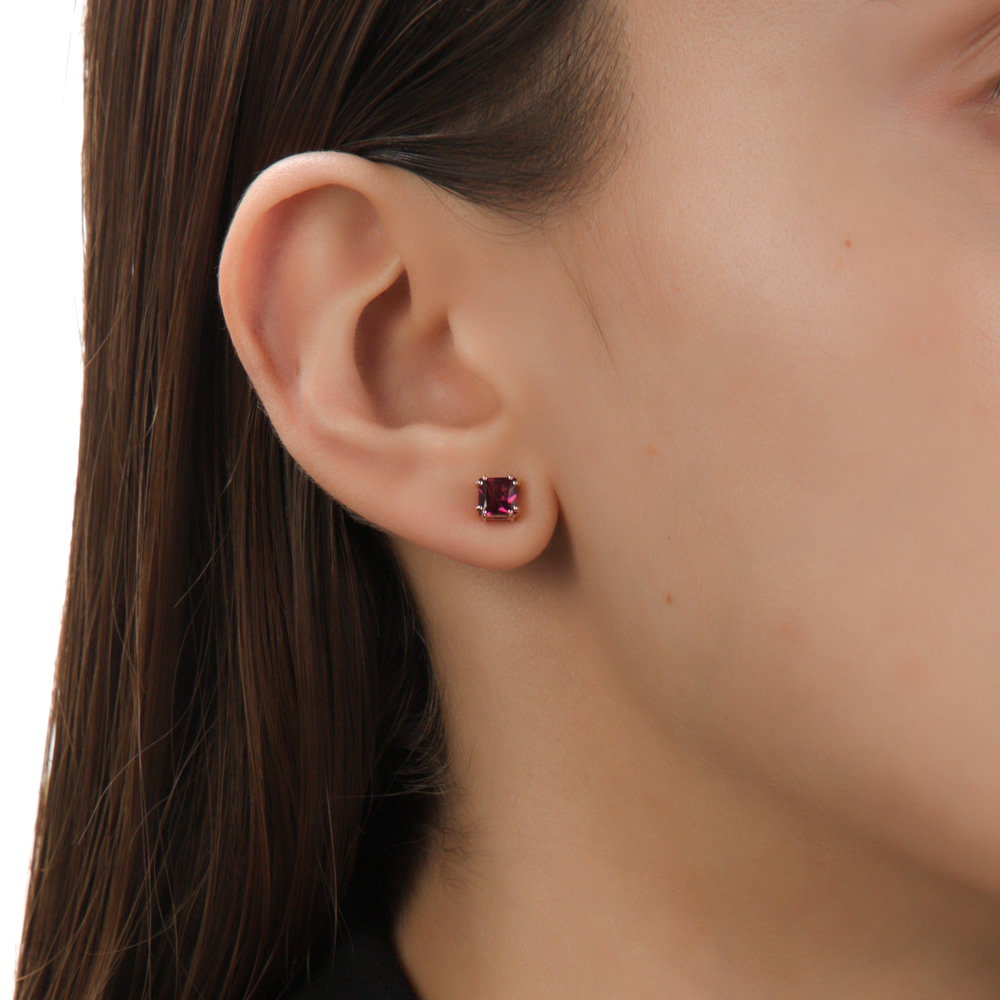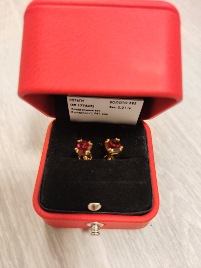 В редких случаях характеристики украшения или упаковка могут иметь отличия от представленных на фото или в описании.Серьги с 2 родолитами природными, 1.58 карат;