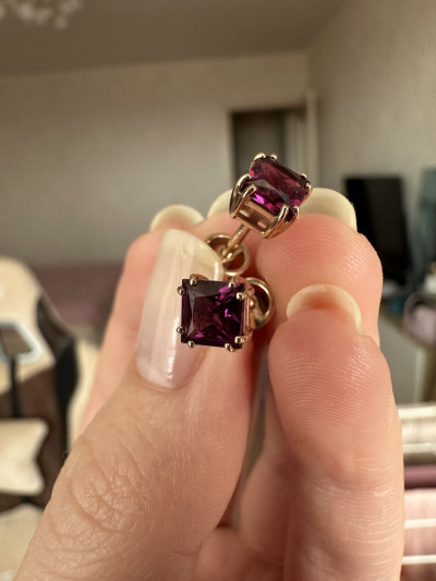 Камешки родолиты природные, в роскошной огранке, цвет 🔥 фиолетово темно розовый. Сережки правда на толстую мочку, ношу с силиконовыми вставками, что бы камень не свешивался.