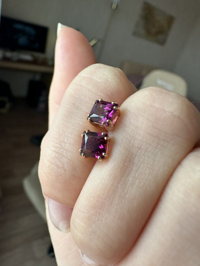 Элегантные Родолиты в изысканной огранке! Очень интересный цвет у пусет , малиново- фиолетовый.