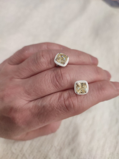Эти серьги просто великолепны! Яркие, как солнышко! Обрамленные белой эмалью! Покупаю уже второй раз своим племянницам! Очень красивый желтый фианит! Рекомендую к покупке. Покупала к кольцу.