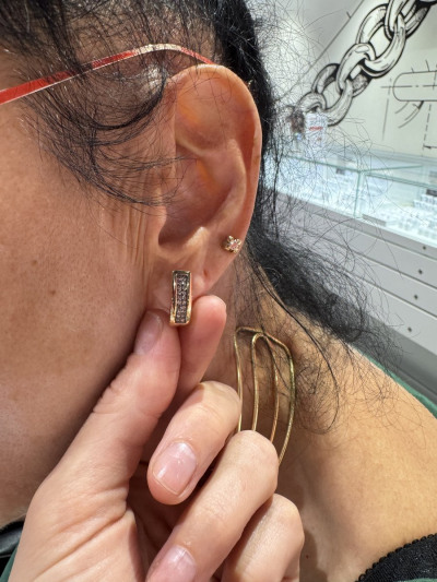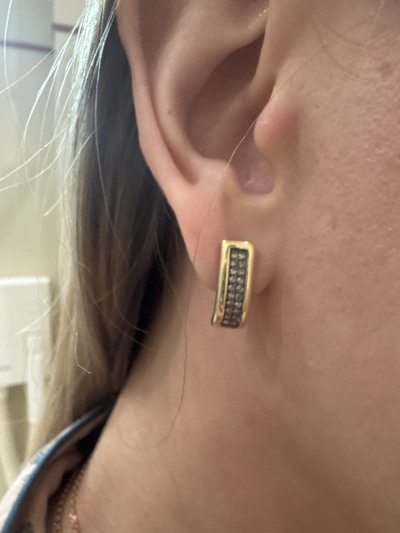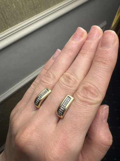 Искала пару к кольцу и эти серьги отлично подошли. Блеск бриллиантов очень хорошо дополнил достаточно широкий золотой кант по периметру. Элегантные солидные серьги-дорожки с моими любимыми коньячными бриллиантами!