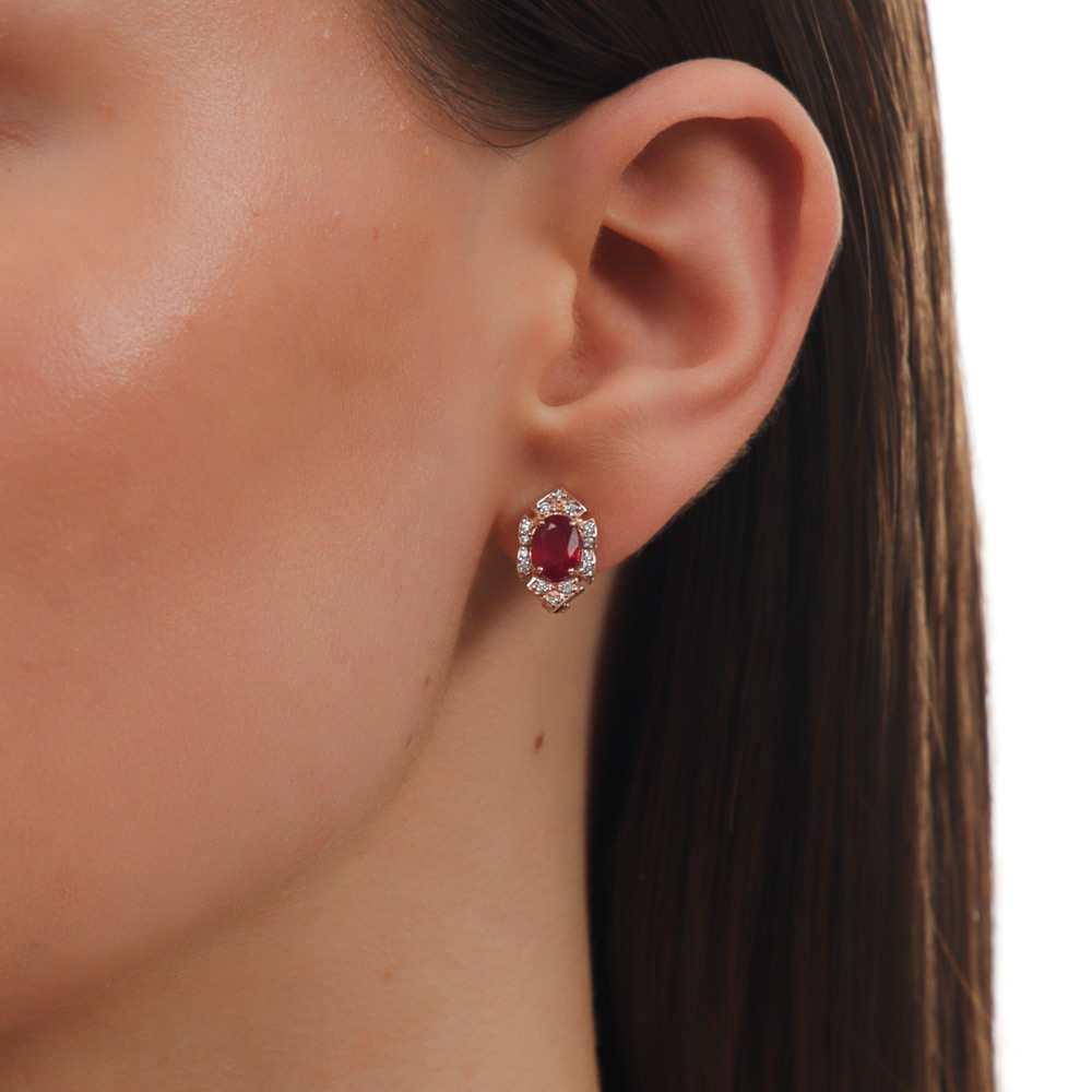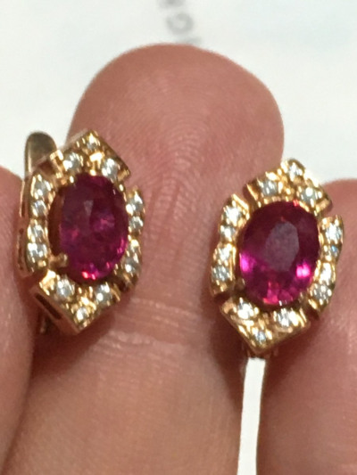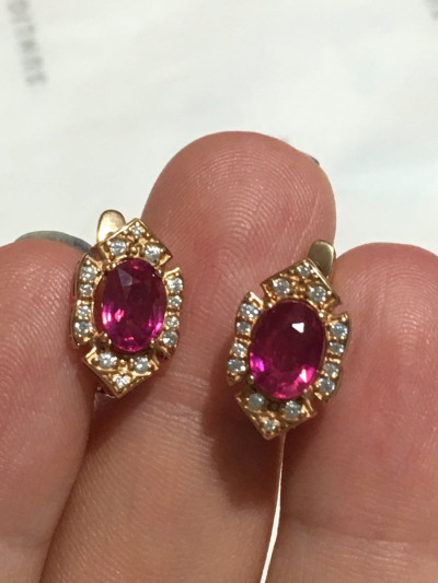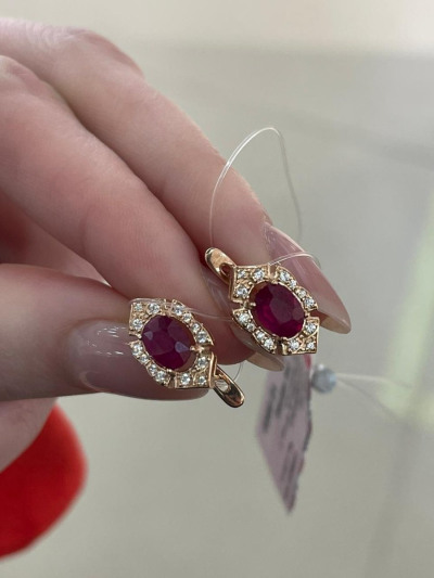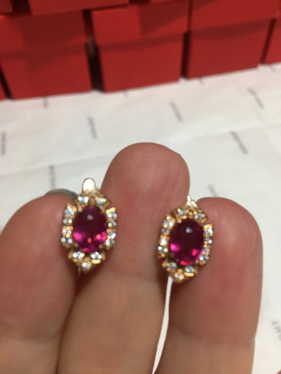 Очень милые серёжки, больше даже похожи на пуссеты в обрамление фианитов, но рубинчики насыщенного цвета и поэтому хорошо смотрятся.