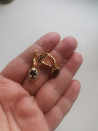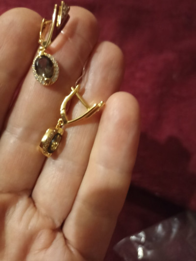 Серьги очень красивые, царские прям:) Заказала к ним кольцо. Надеюсь позолота не облезет быстро. Камень натуральный, кроме фианита. Позолота жёлтая, имейте ввиду, но это не удишевляет внешний вид изделия.