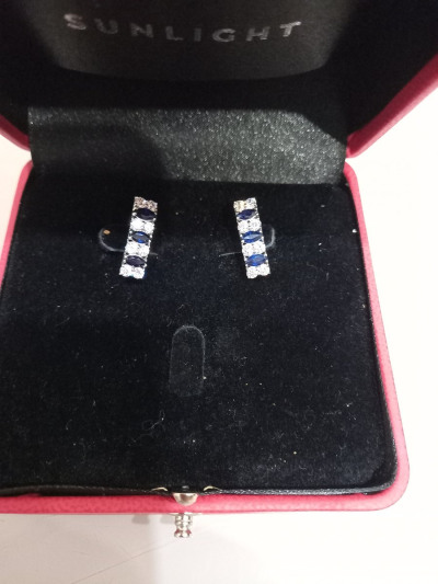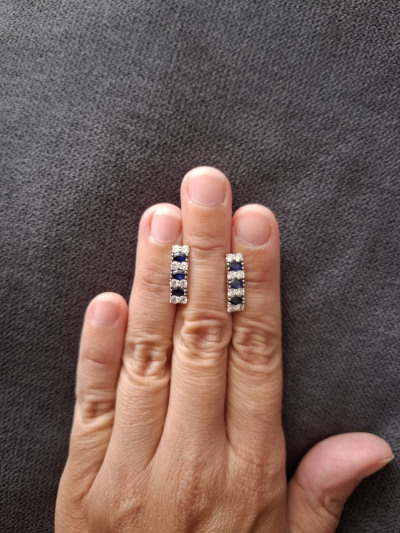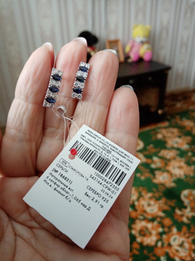 Серьги красивые. На свету переливаются. Мне очень понравились. Вот только я думала что камушки голубые. А они совсем не такой цвет. Это может я сама не знала какого цвета сапфир. Но мне все понравилось. Будем носить.
