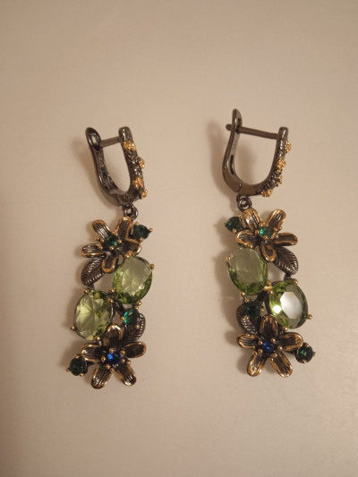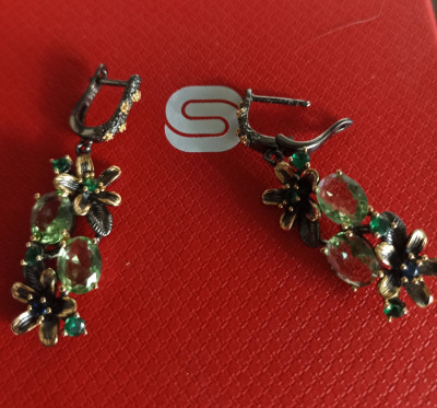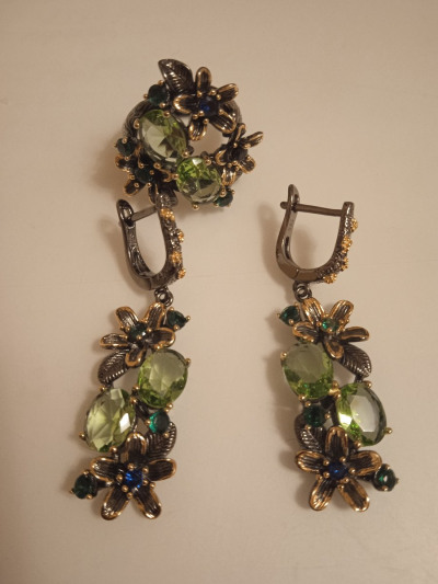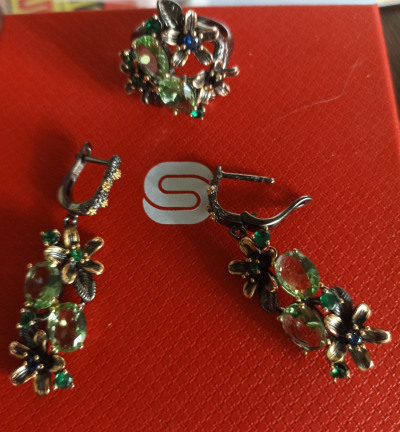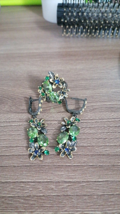 Прекрасный комплект на лето. Серьги лёгкие, хоть и с камнями. Не тянут. В сочетании с кольцом образ получается яркий. Проработаны все мелкие детали, очень красиво.