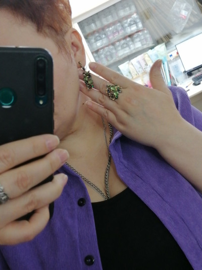 Брала кольцо,, теперь такие же серьги,, великолепный комплект.. Я в восторге..