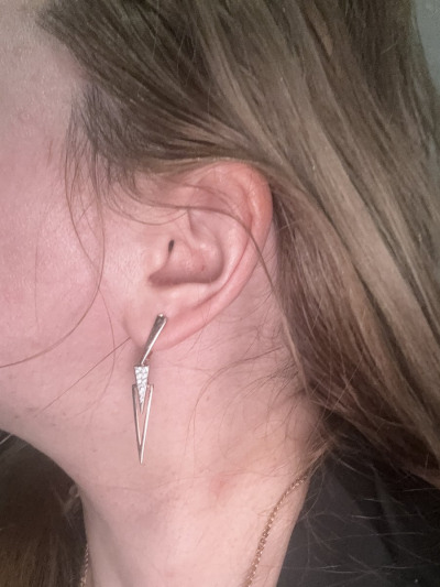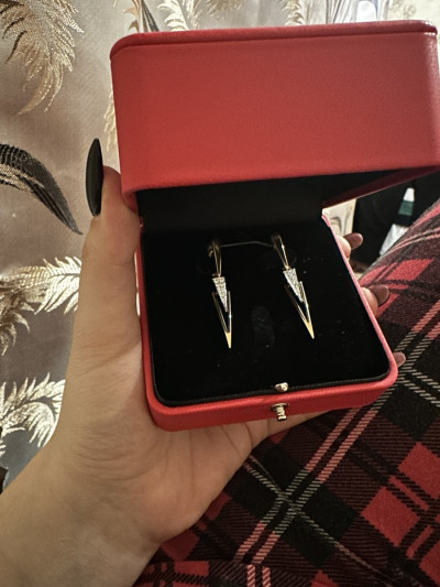 Сложно найти такого плана сережки, очень долго искала, чтобы форма была треугольной вытянутой