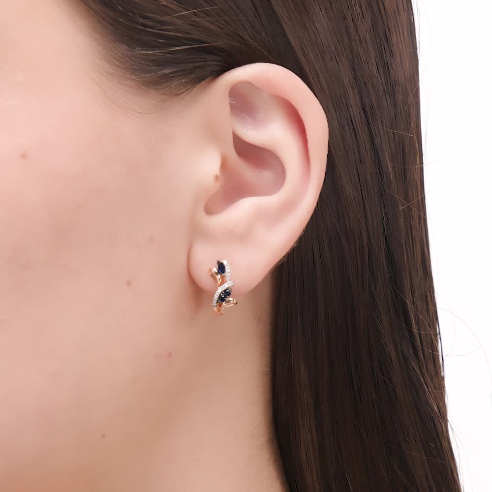 Золотые серьги с бриллиантами природными и сапфирами природными