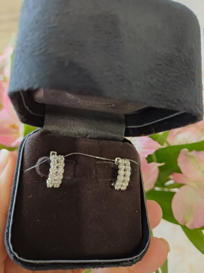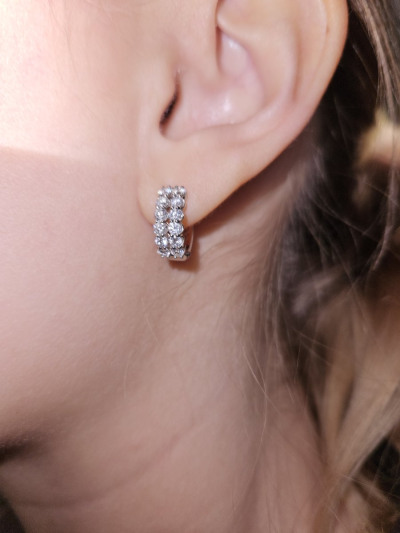 Серьги с 24 бриллиантами природными, 1.07 карат, огранка круг 57 граней, цвет 3, чистота 7, тип огранки А;