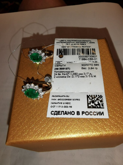 Прекрасные серьги с изумрудами и бриллиантами, очень давно мечтала о таких украшениях. Особо хочу отметить доброжелательное и вежливое обслуживание продавца Марии, спасибо большое Вам, Мария!