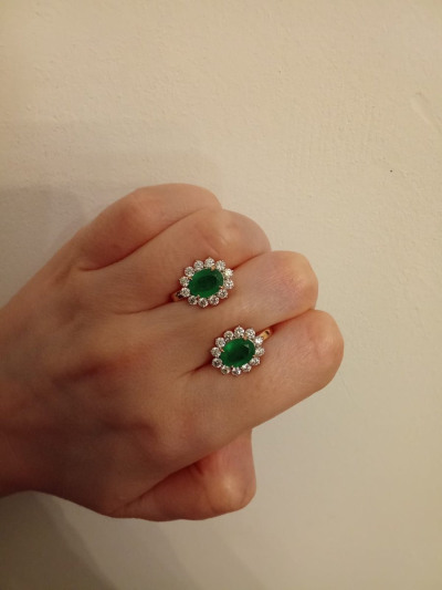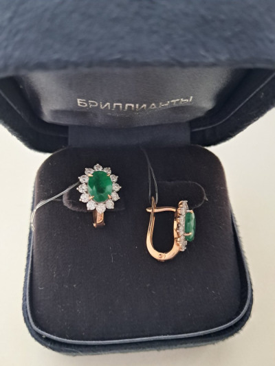 Купила комплект серьги и кольцо. Бриллианты невероятные - чистые, крупные. Изумруды великолепные, крупные. Покупкой очень довольна