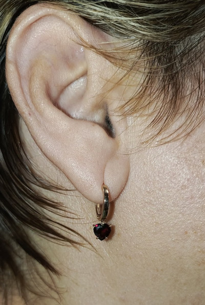 Очень симпатичные серьги, прекрасный гранат к, смотрится очень стильненько, красота в минимализме. Конго очень удобно сидят, спать не мешают. ❤️❤️❤️🔥