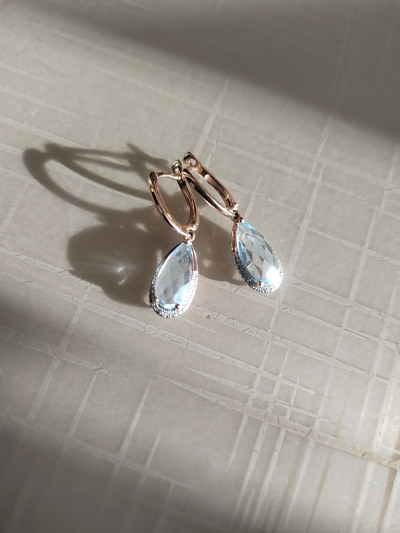 Очень красивые серьги Топаз чистый ,отдает в голубой. Они ни не сказать что б лёгкие и не тяжёлые но ощутимый на ушах.Мне все в них понравилось .Капли очень красивые ,бриллиантики искрят на солнце! Брала по сберкридит .Очень рада у покупке рекомендую Санлайт вы лучшие !!!
