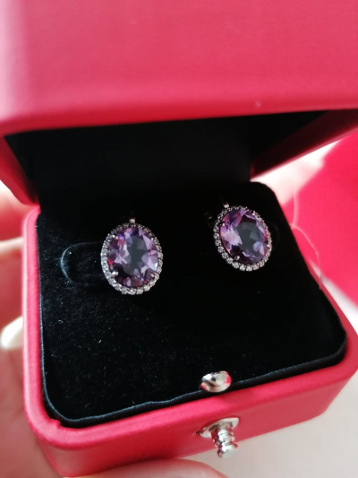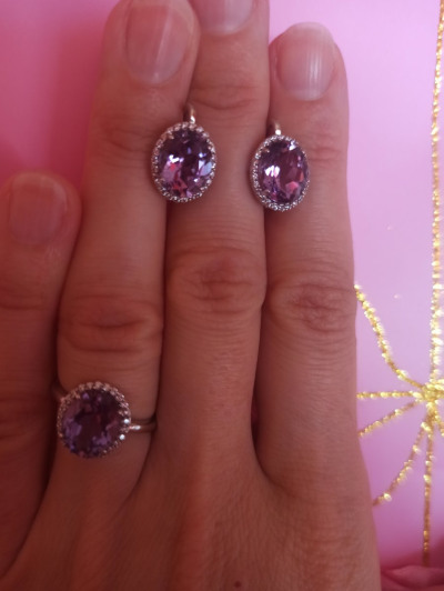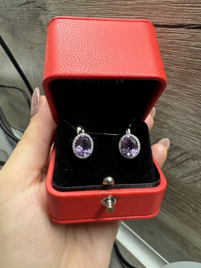 Красивые серьги, подойдут как постоянно носить и как выходной вариант. Аметист не маленький и не огромный - точто нужно, цвет насыщенные не бледнный