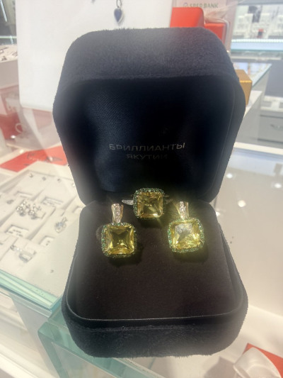 Серьги очень красивые. Кварц и изумруды ярко играют на солнце. Очень богато смотрятся