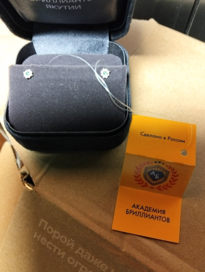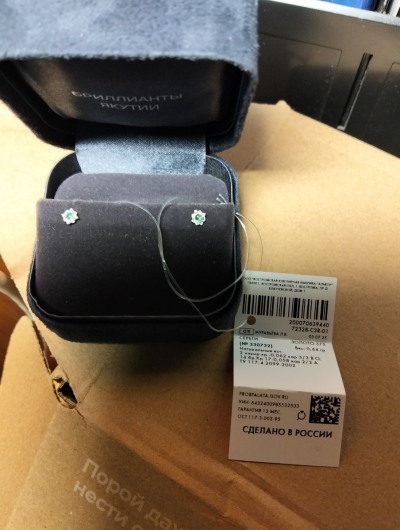 Мне очень понравились серёжки. Маленькие, яркие. Взяла для второго и третьего прокола. Аккуратные, для третьего прокола идеально, для второго может быть и маловаты, уши у всех разные. Упаковка, как всегда, впечатляет и радует. Паспорт изделия на месте, но по УИН в этот раз даже не проверяла. В Санлайт всё всегда сходится, а бренд Бриллианты Якутии- это качество, не требующее проверки! Спасибо всём причастным к моей радости от покупки!