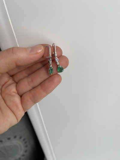 Серьги соответствуют цене-качеству.Привлёк цвет изумруда,он ближе к модному колумбийскому оттенку,не травяной.Но,конечно,присутствуют вкрапления)пришлось выбирать из трёх пар,за что отдельная благодарность за помощь моему консультанту в Сокольниках!