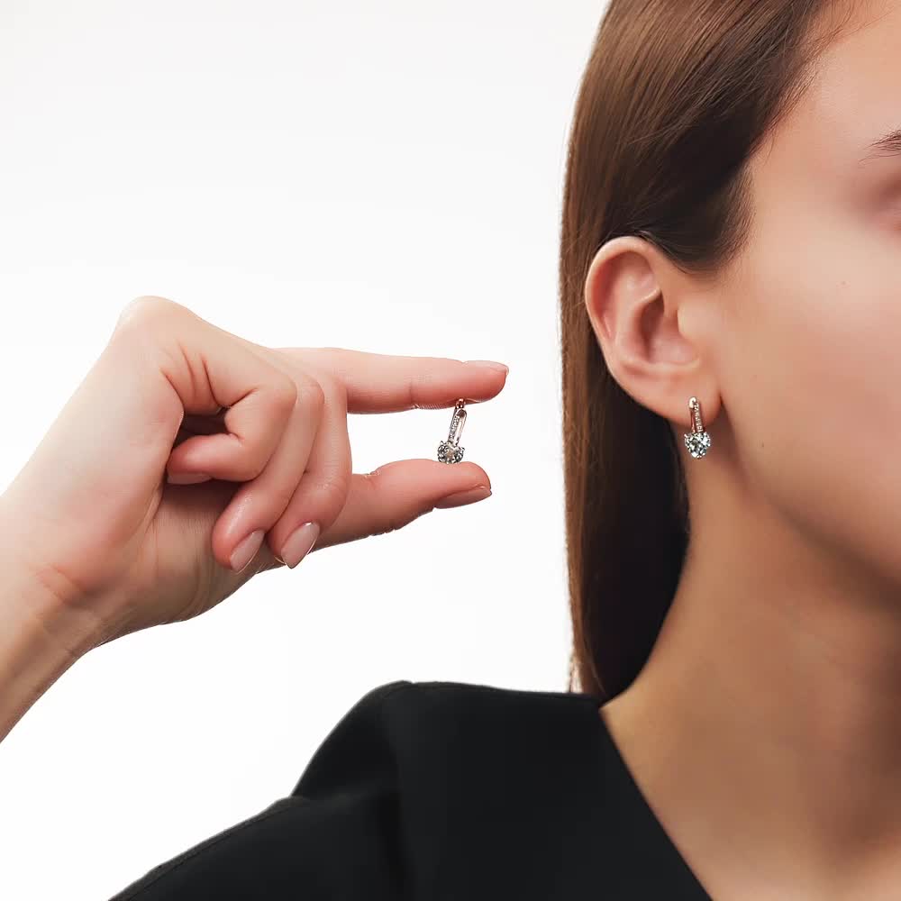 Серьги с 10 бриллиантами природными, 0.04 карат, огранка круг 17 граней, цвет 2, чистота 2, тип огранки А;
