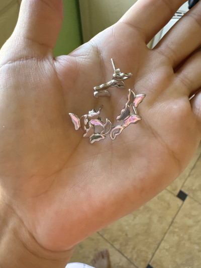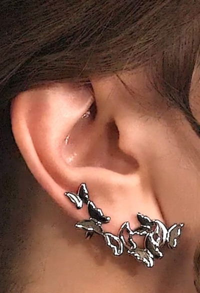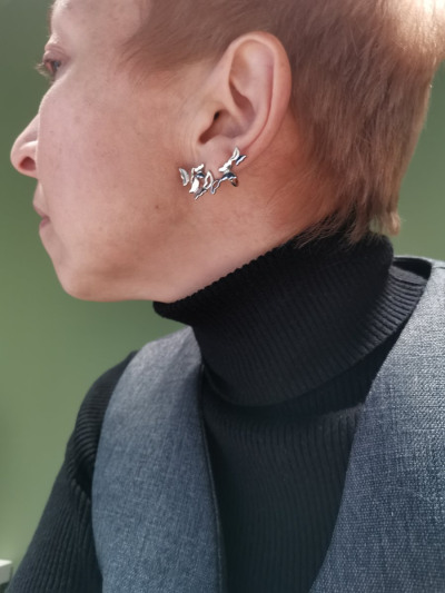 Милые сережки, но большая сережка практически не держится в нужном положении. Я подогнула по максимуму крючок, который должен поддерживать сережку вдоль мочки уха, но всё равно под собственным весом (она тяжеленькая) сползает.