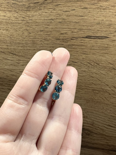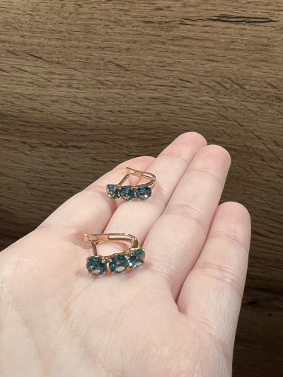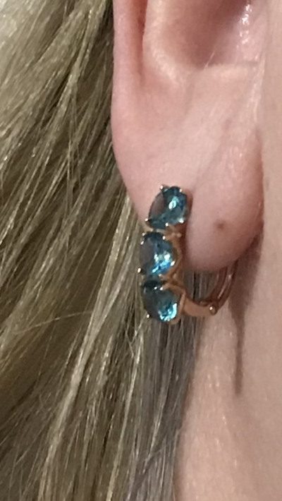 Очень красивые , необыкновенные и фантастические камни наноситал турмалин Параиба! Сверкают , переливаются разными оттенками зелёного и синего. Прям море , океан! Большой респект мастерам , сделали серьги , как с меня мерки сняли. Прокол очень высоко , многие серёжки малы , а эти очень удобные , не цепляются за волосы , Не жмут , не тянут, очень круто смотрятся!