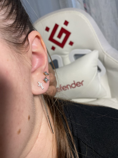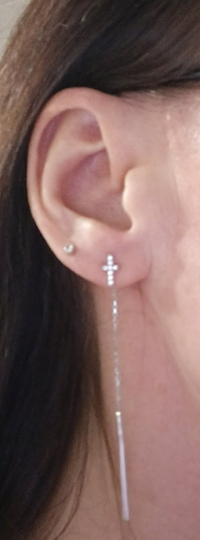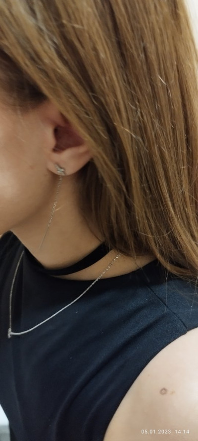Серьги очень понравились , аккуратные и красивые , удивила палочка на цепочке для продевания в прокол , такой длиной не видела не разу 😀 но это не плохо смотрится