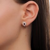Золотые серьги с фианитами и гранатами природными