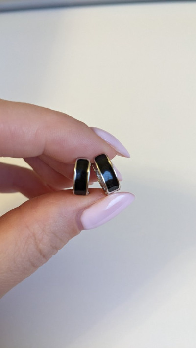 Серебряные серьги с черной эмалью: милые, маленькие, вес 2.31 г. Рекомендую