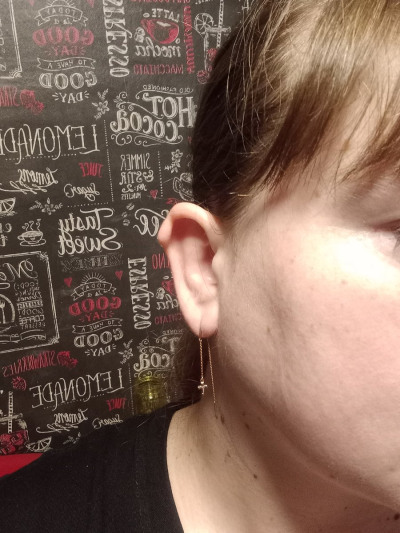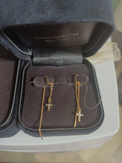 Очень нежные, красивые, лёгкие сережки. По длине отличные. Купили дочери. Белое золото крестик отлично сочетается с цепочкой из серебра.