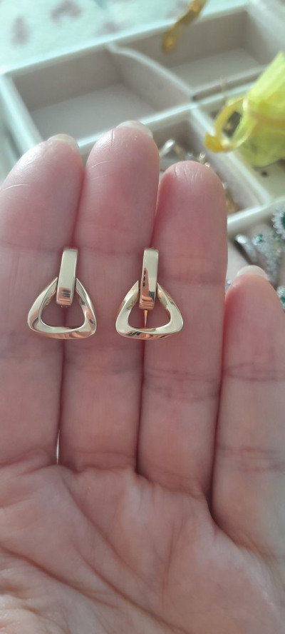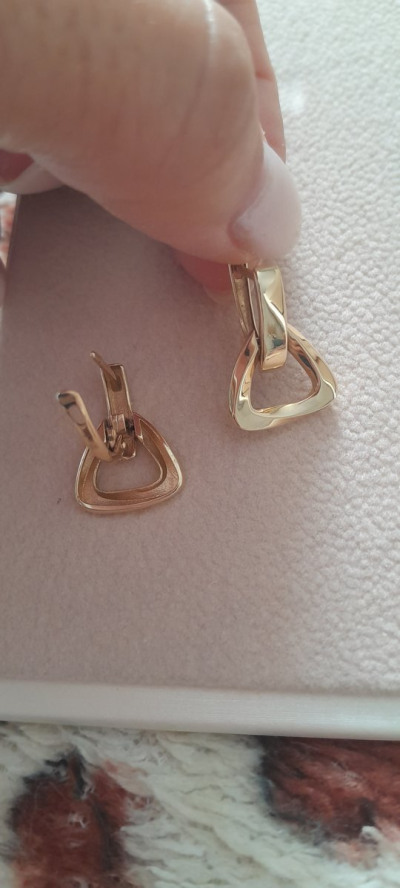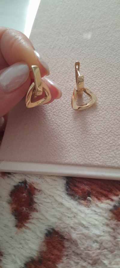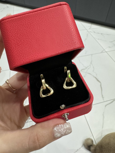 Серьги мне очень понравились. Я давно их присмотрела. Но всегда нужно мерять. Размер для меня идеальный. Также в последнее время полюбила желтое золото.