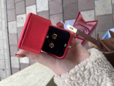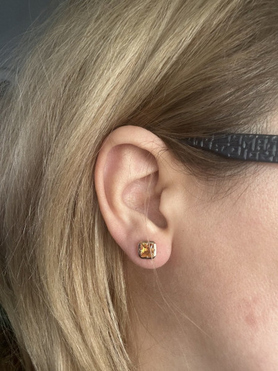 Совсем не маленькие, заметные, камни яркие, стали одни из самых любимых. Мочка тонкая, силиконовые заглушки помогают.