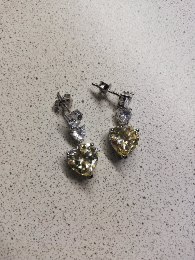 Красивые и нежные серьги! Прекрасная форма и сердца белого и желтого цвета красиво играют на свету, блестя потрясающе!