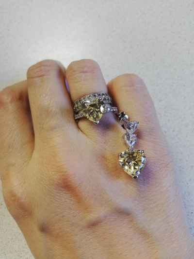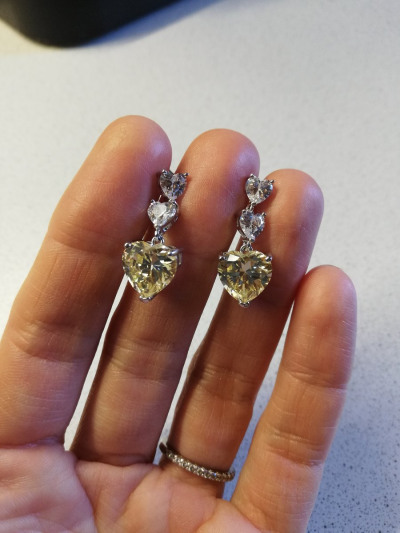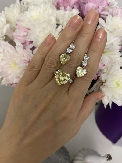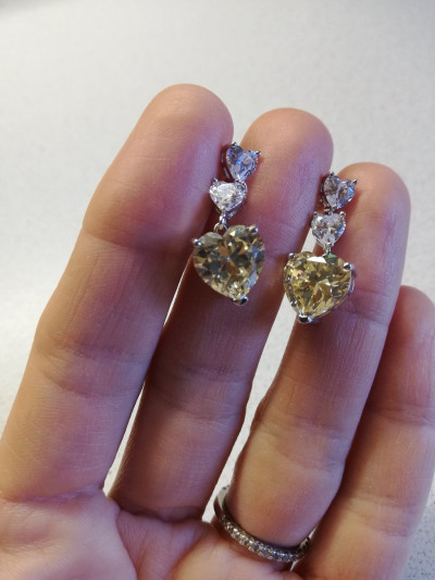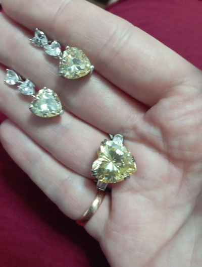 Очень красиво переливаются💛 Люблю жёлтые фианиты, а в огранке "сердце" они просто бесподобны! Взяла комплектом с кольцом. Рекомендую!