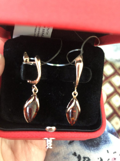 Очень красивые серьги. Замок хорошо закрывается. Янтарь красивый.