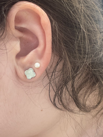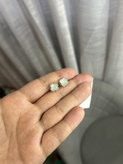 Достаточно крупные, но при этом аккуратно ложатся на мочку уха. Цвет просто потрясающий - приглушенно-зеленый. Подойдёт на каждый день