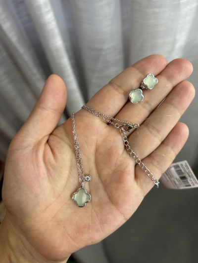 Очень красивый, нежный комплект. Сережки без закручивающегося замка.