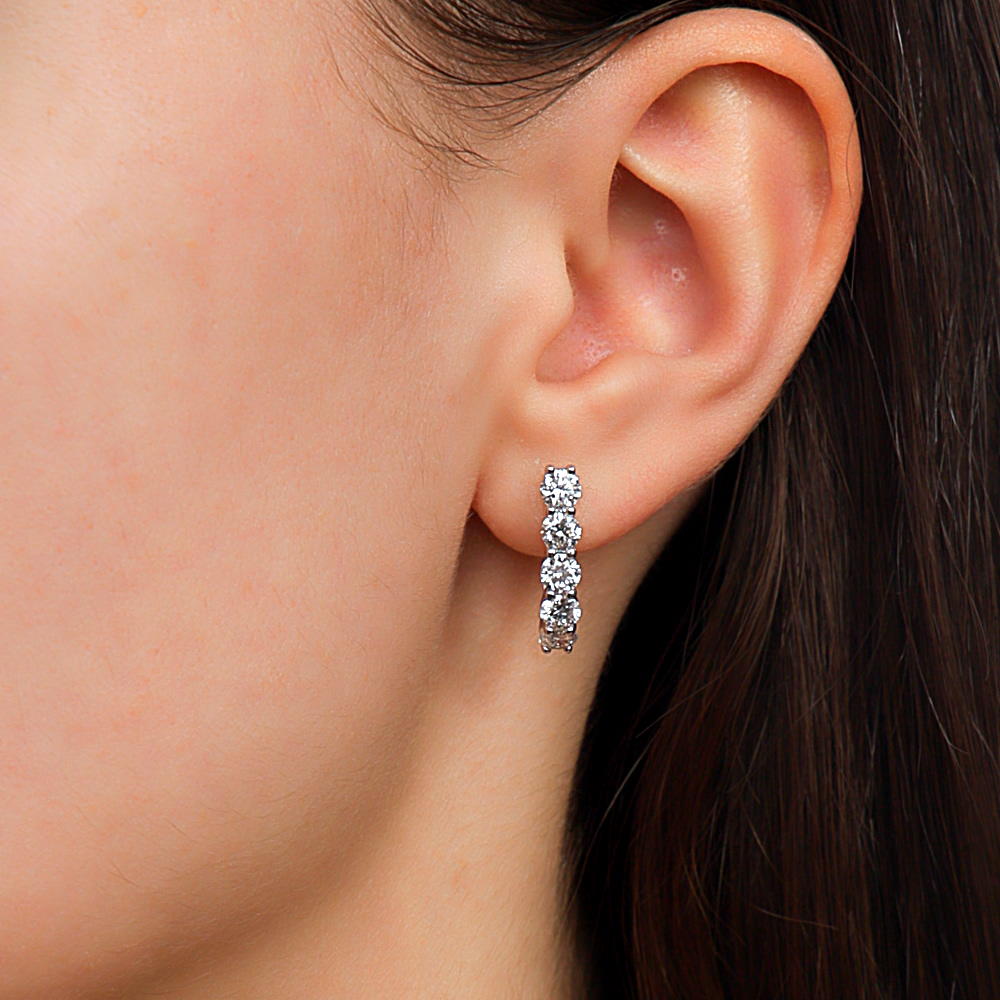 Серьги с 10 бриллиантами выращенными, 2.14 карат, огранка круг 57 граней, цвет 3, чистота 6, тип огранки А;