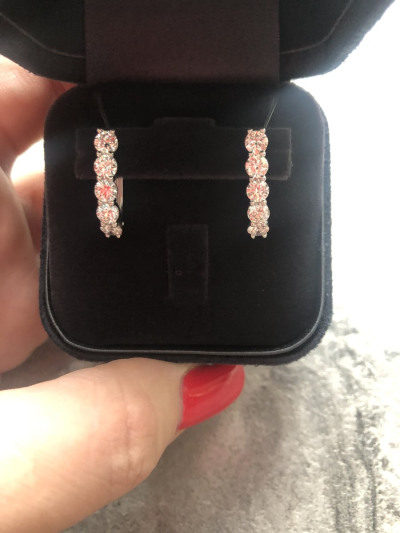 Подарок любимого супруга на мой юбилей! Когда увидела их, не смогла оторвать взгляд и уже не выпустила из своих рук. Переливы и блеск камней просто завораживают! Благодарность учёным, которые смогли вырастить бриллиант, схожий с природным, по своим характеристикам! Это отличная альтернатива для тех, кто не имеет возможности платить миллионы за природные бриллианты!