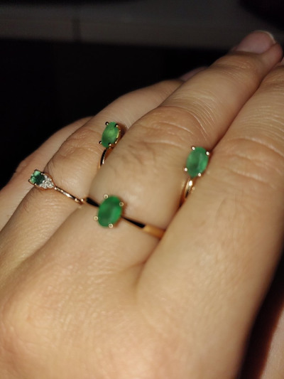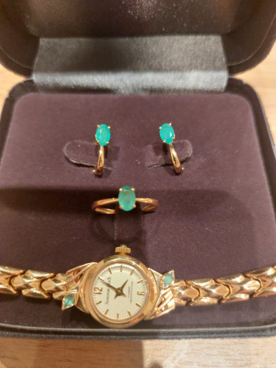 Подбирали природные изумруды к золотым часикам. Очень понравился комплект из колечка и серёжек.