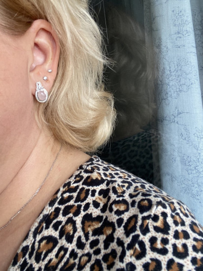 Охотилась за ними в течении полугода, вначале очень понравились но цена «кусалась»., подумывала взять в серебре с розовым кварцем… И вот рассматривая витрину в магазине натыкаюсь на них, такие нежные, розовые кварцы в обрамлении бриллиантов мм))) сказочно хороши, не видно розового золота из-за обрамления бриллиантов , штифт прилично занижен. Красота!!!