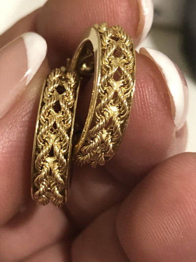 Серьги Конго среднего размера, желтое золото, хороший вес. И в пир и в мир. Спасибо консультанту Дарье за помощь в выборе.