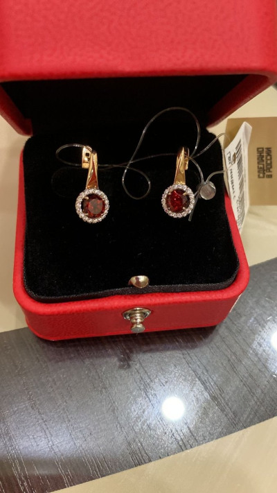 В редких случаях характеристики украшения или упаковка могут иметь отличия от представленных на фото или в описании.Серьги с 2 гранатами природными, 1.17 карат;