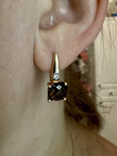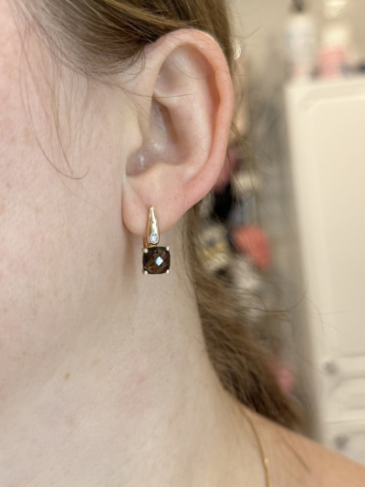 Золотые серьги с бриллиантами природными и кварцами дымчатыми природными