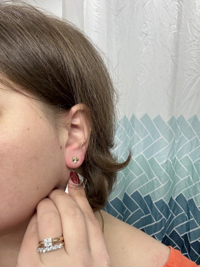 Купили дочке эти милые серёжки с природный изумрудом на 9 летие.🎁 Они прекрасно переливаются за счёт своих граней, сзади застежка в виде сердечка. 🫶 Очень аккуратно смотрятся на детском ушке ✨ Спасибо магазин Санлайт💫