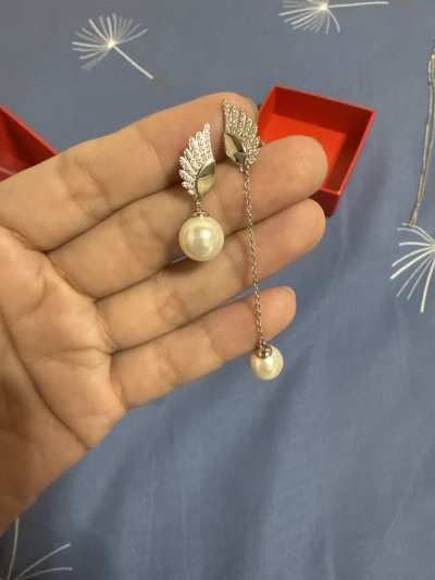 Очень красивые, необычные серьги с жемчугом. На крылышках сверкают фианиты.