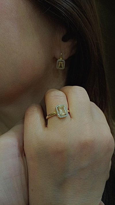 Я в восторге от этих серёжек и кольца! Роскошный блеск, очень изысканно и красиво смотрится! Камень в сочетании с бриллиантами переливается, как дорогое шампанское в хрустальном бокале!!!